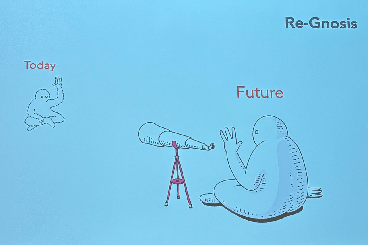 In the keynote from Oona Horx Strathern, we learned how megatrends are shaping our future. One interesting idea was that instead of creating a prognosis — a forecast of the likely outcome of a situation — we should focus on re-gnosis, the opposite approach. With re-gnosis, we start by seeing the future clearly and then work backwards, breaking down the steps and tasks needed to get there. The speaker also introduced the concept of the kindness economy — a trend in which companies focus less on pure profit creation and more on people and the planet, measured through sustainability and long-term impact.